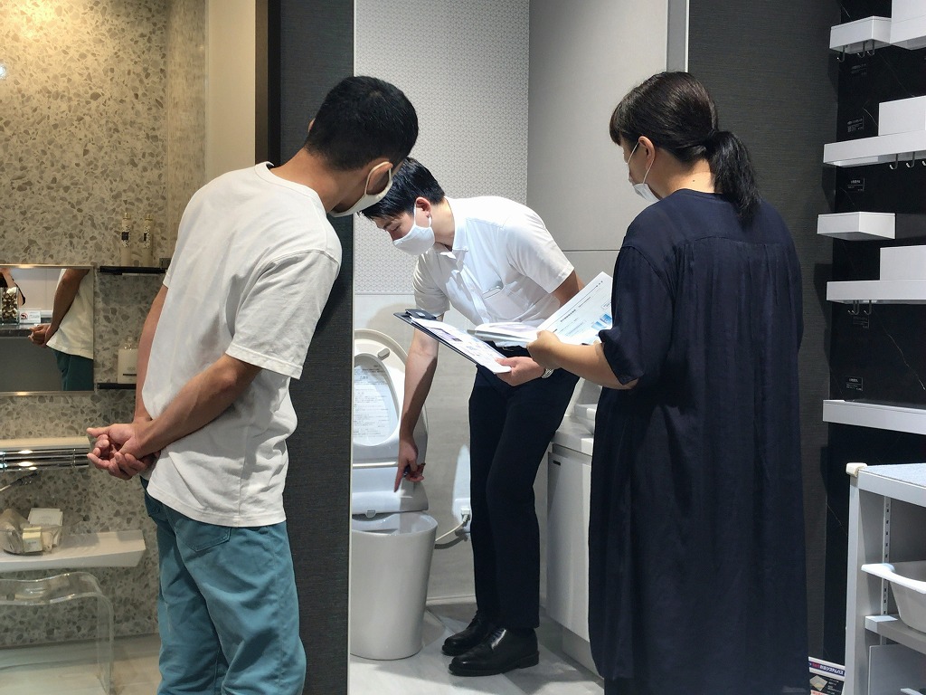 今回は、当社でご成約いただいたK様のショールーム見学に同行させていただいた内容をご紹介したいと思います。プランが決まり間取りが確定したら、いよいよ設備や建具などを決めていきます。ご希望の方は当社設計士やメーカー担当者の説明を受けながら、実際の商品を触って質感を確かめたりすることが可能です。色や素材感のバリエーションを比較することで、よりイメージが具体的なものになりますよね。