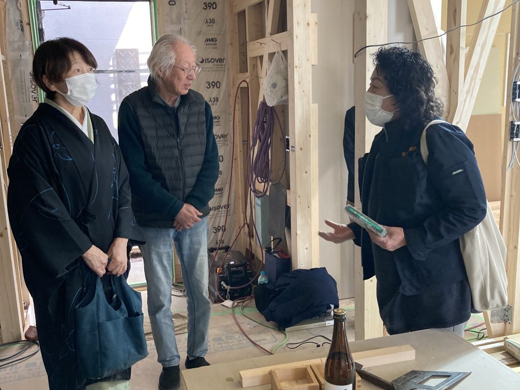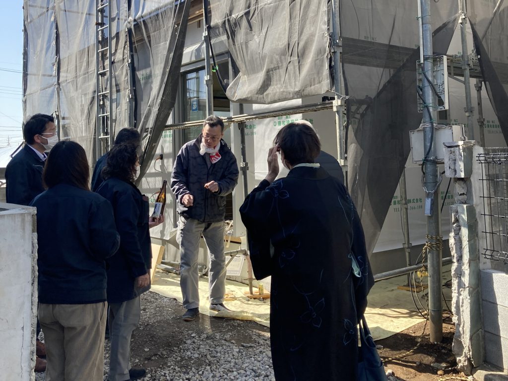 建物の四隅にお酒やお米・お塩を撒いて清め、