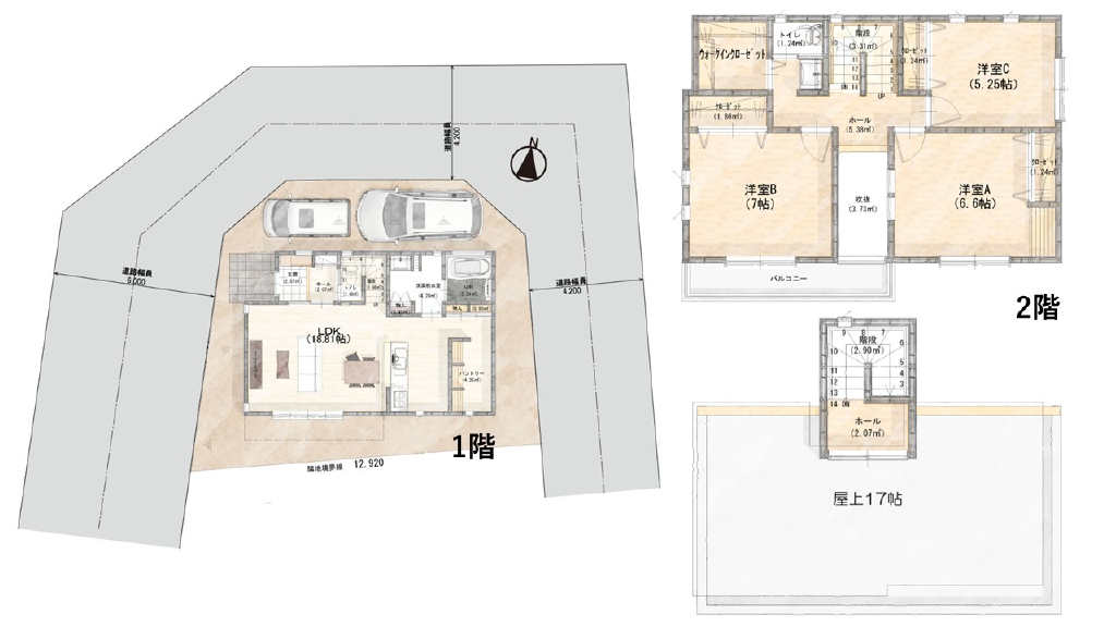 | 間取詳細 | (1階)LDK18.81、(2階)洋6.6、(2階)洋7、(2階)洋5.25 | ||