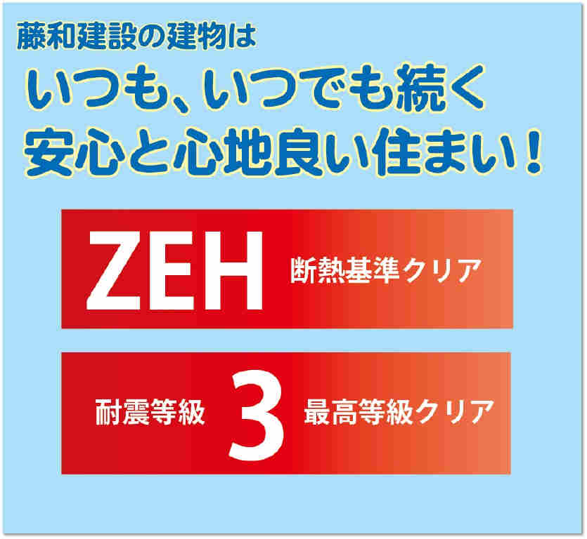 | 特色 | 住宅保証保険付き、角地、床下収納、フラット35SA利用可、食器洗乾燥機、公営水道、耐震等級3(最高等級クリア)、公共本下水、駐車場あり、東京電力、駐車場2台可、都市ガス、★インフラ環境・・・電気・公営水道・本下水・都市ガス、☆設備・仕様・・・システムキッチン,システムバス,ウォシュレット,ペアガラス,TVモニター付インターフォン,24時間換気,浴室暖房乾燥機、ZEH(断熱基準クリア) | ||