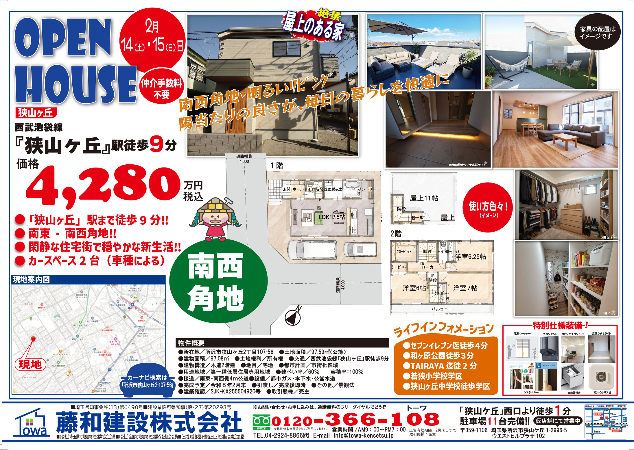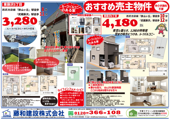 藤和建設株式会社は、所沢エリアを中心とした、新築一戸建て・増改築・リフォーム・土地販売を主な業務としている不動産会社で、西武池袋線狭山ヶ丘駅から徒歩2分のアットホームなお店です。お客様の大切なお住まいを、地域に密着した不動産会社である弊社スタッフが納得いくまで責任を持ってお手伝い致します!売主物件『木家nity』シリーズは、間取りや収納スペースの確保にこだわりを持ち、物件ごとに快適に暮らせる工夫が施されています。また、広々とした「屋上つきの家」であなただけのプライベート空間を楽しめます。もちろん、ご購入後のアフターサービスも当社にお任せください!