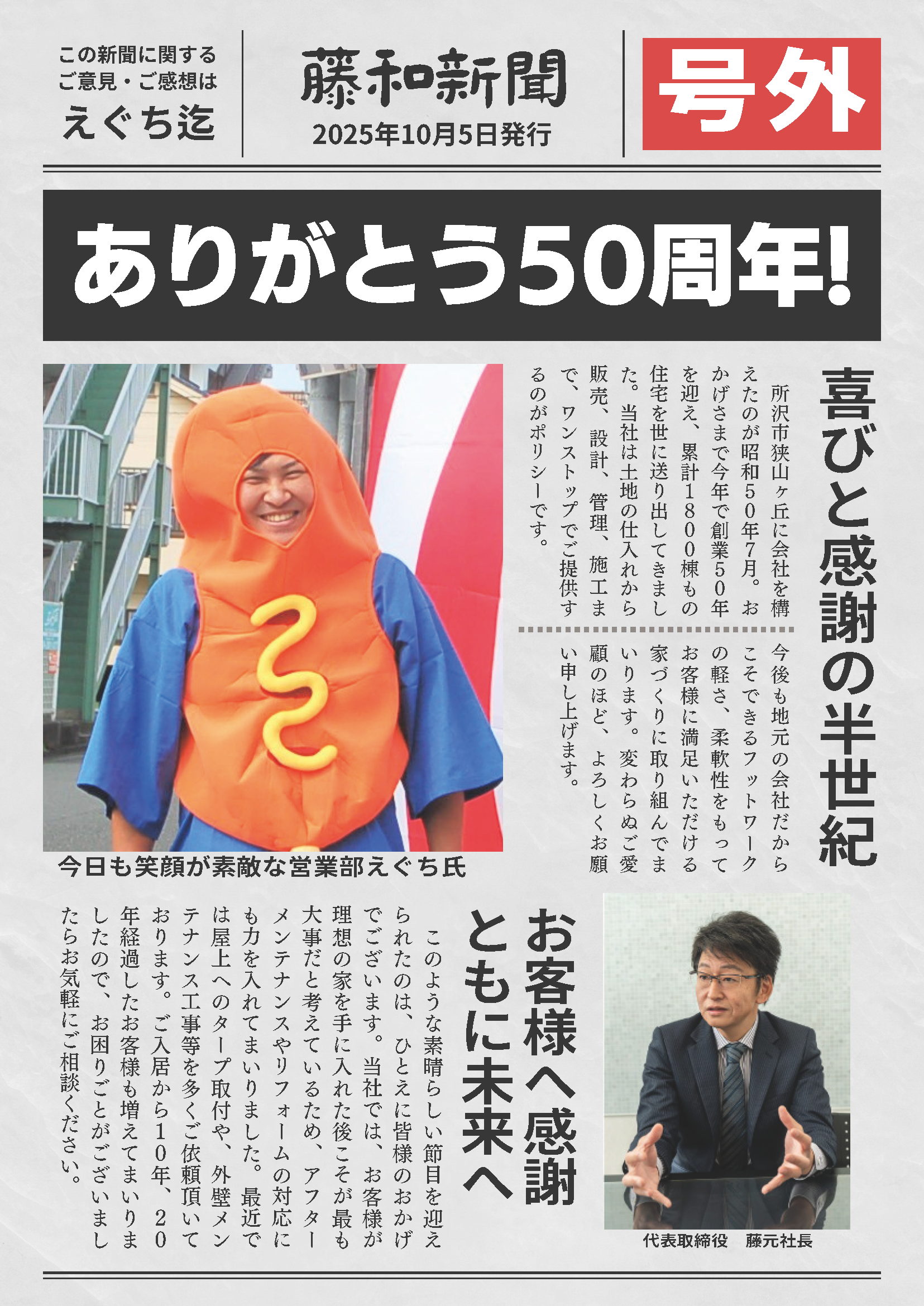 先日開催させて頂いた藤和建設の50周年大感謝祭には