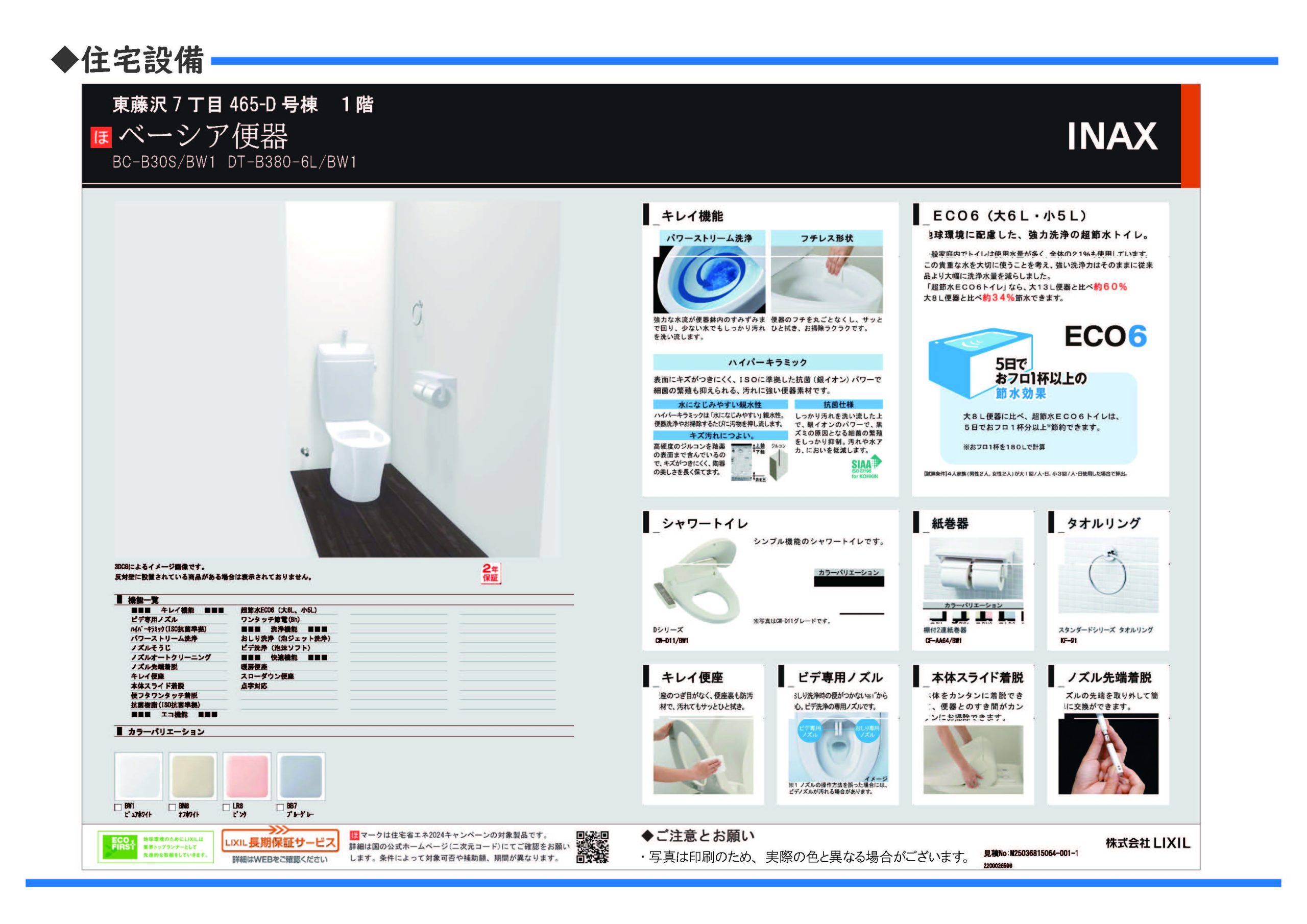 | 特色 | 住宅保証保険付き、床下収納、フラット35SA利用可、食器洗乾燥機、公営水道、耐震等級3(最高等級クリア)、公共本下水、駐車場あり、東京電力、都市ガス、★インフラ環境・・・電気・公営水道・本下水・都市ガス、☆設備・仕様・・・システムキッチン,システムバス,ウォシュレット,ペアガラス,TVモニター付インターフォン,24時間換気,浴室暖房乾燥機、ZEH(断熱基準クリア)、角地 |