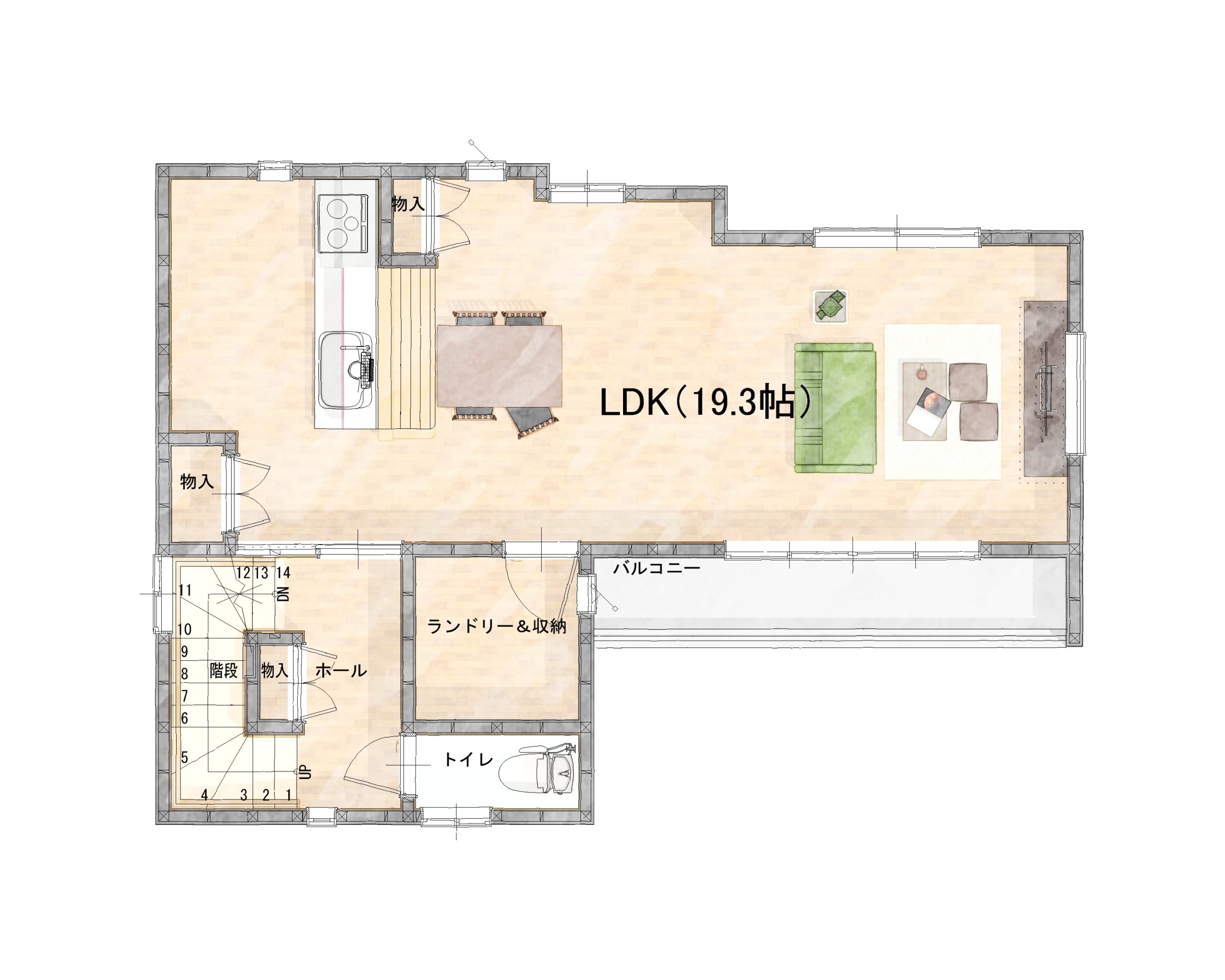 ◎ご家族の会話がはずむ、開放的な19.3帖の開放的なLDK空間♪