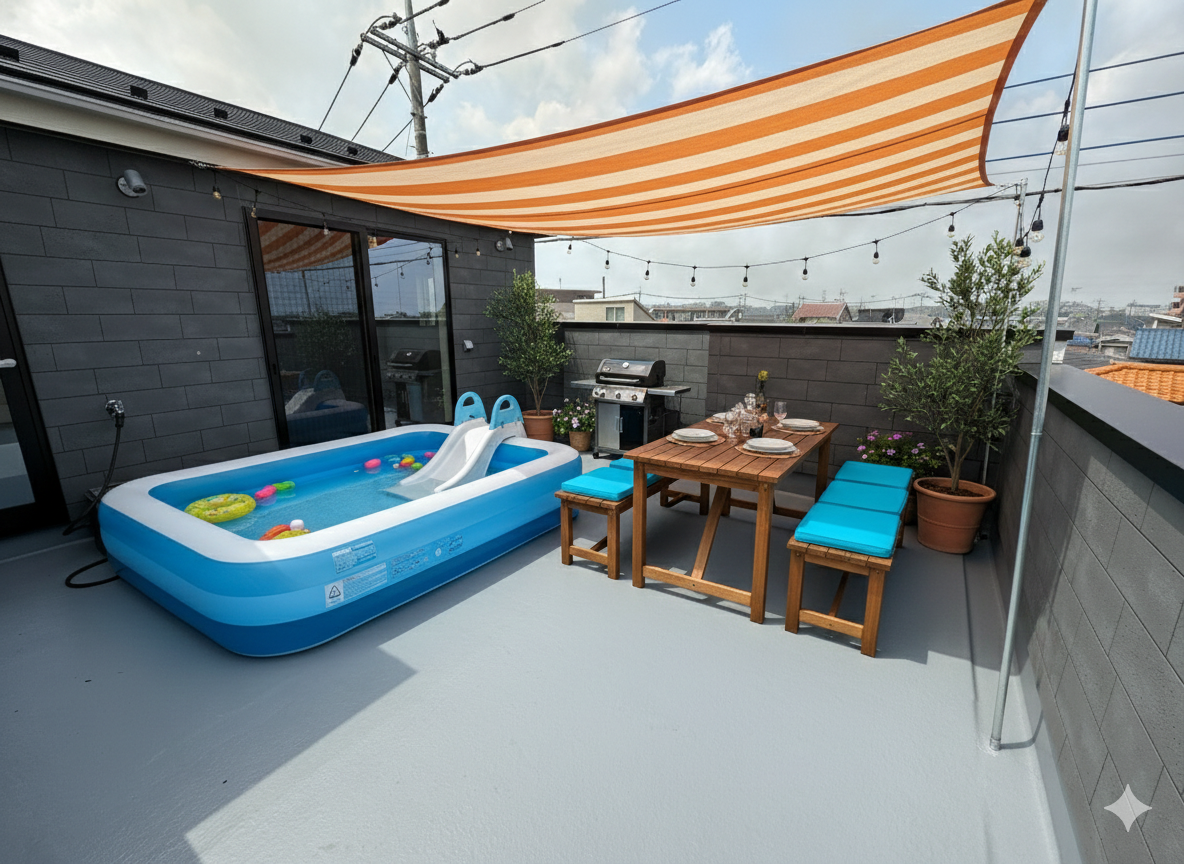 ◎広々12帖の屋上は、BBQやプールなど、プライベート時間充実☆