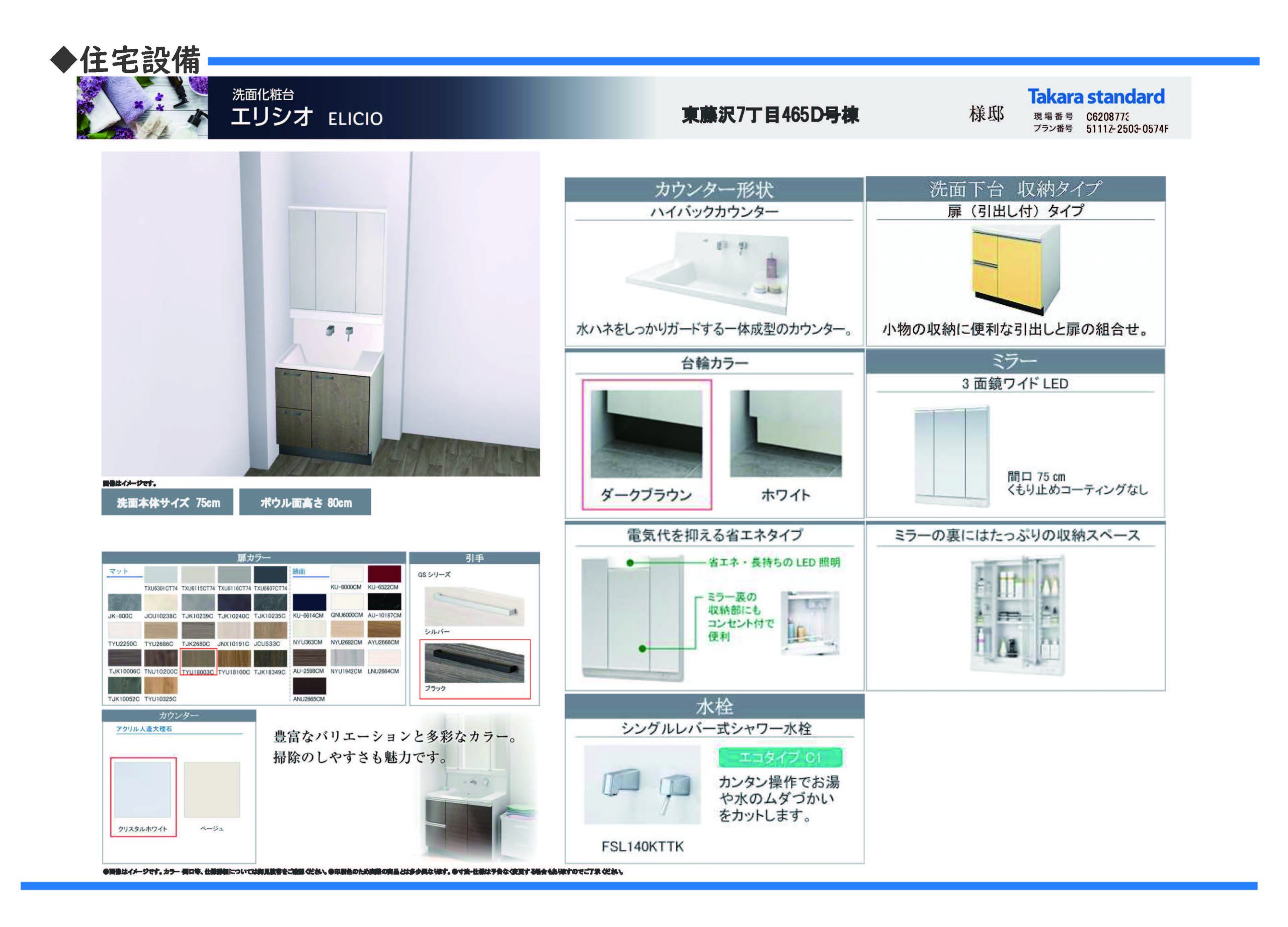 ◎生活に欠かすことができない水廻り!キッチンや洗面台、トイレについては業界屈指のバリエーションと、デザイン性・使いやすさを追求した「タカラ」の最新設備を採用しています。